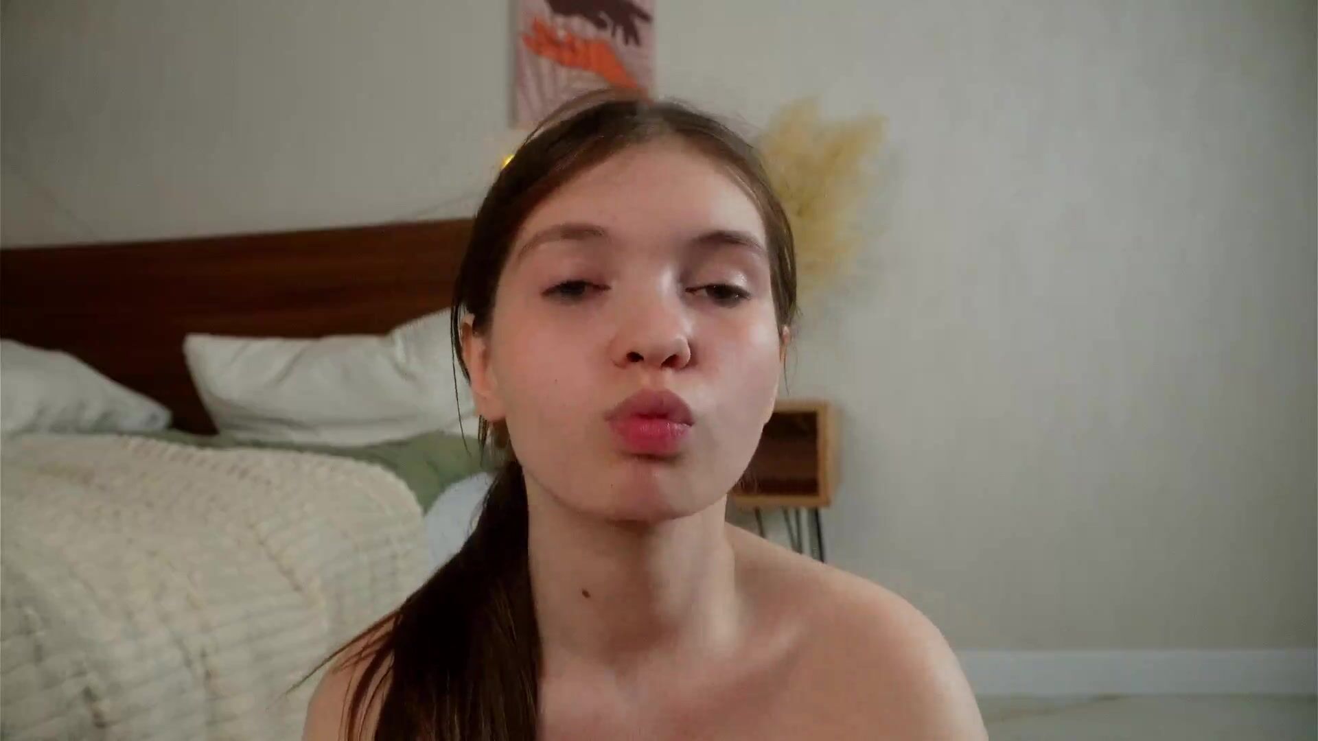 This young blue-eyed bitch excites with her sweet tits and lips and begs to give it to her mouth