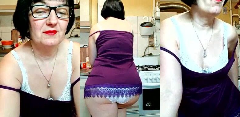 Slutty milf cooks food and shows her big pussy in granny panties