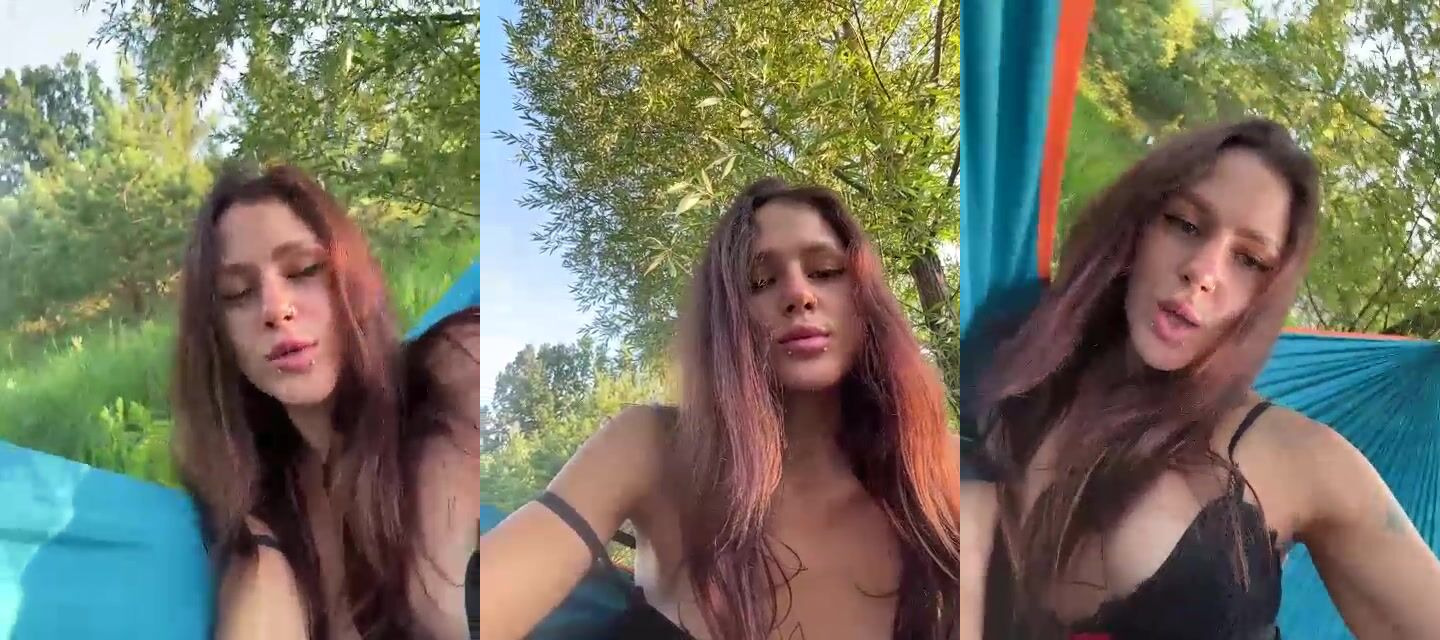 charming young babe is walking on the street and will film you on camera