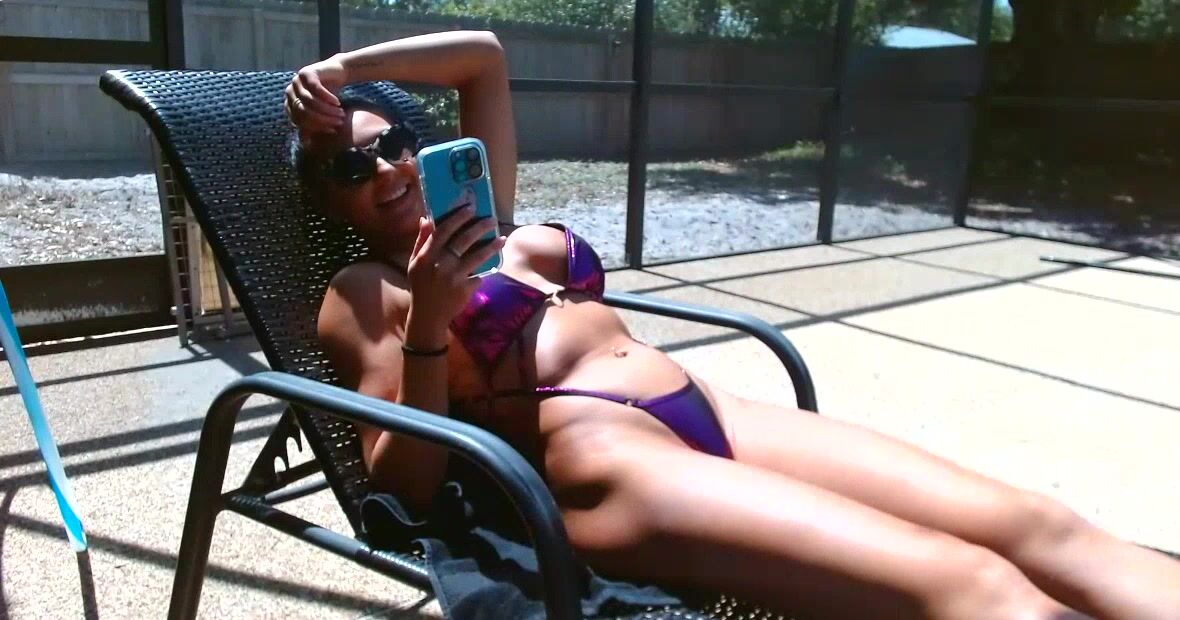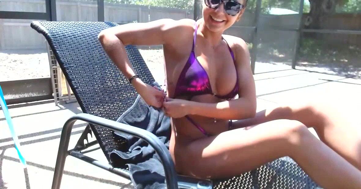 tit with Danilka sunbathing near her pool and just chatting It would be better if you sunbathed naked