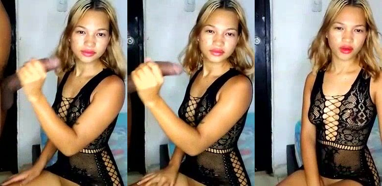skinny latina with small tits sucks and jerks off her man's cock to make him cum on her face babe wants it