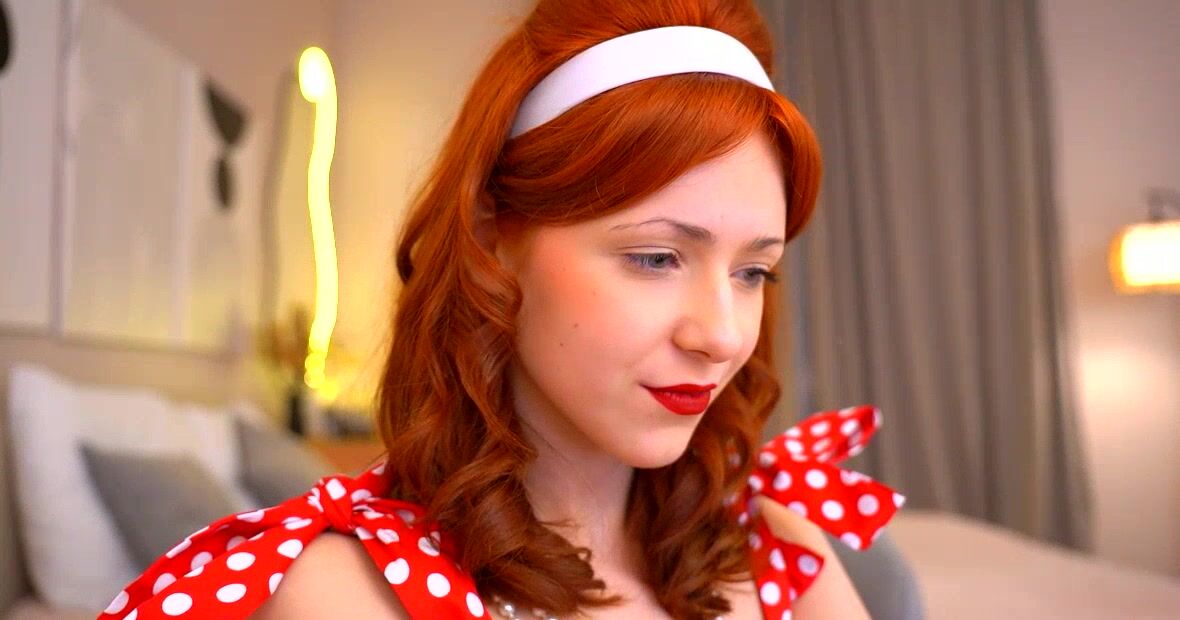The red-haired babe decided that she was Marilyn Menroe and teased with her pussy and ass in panties in a beautiful dress babe it suits you very well
