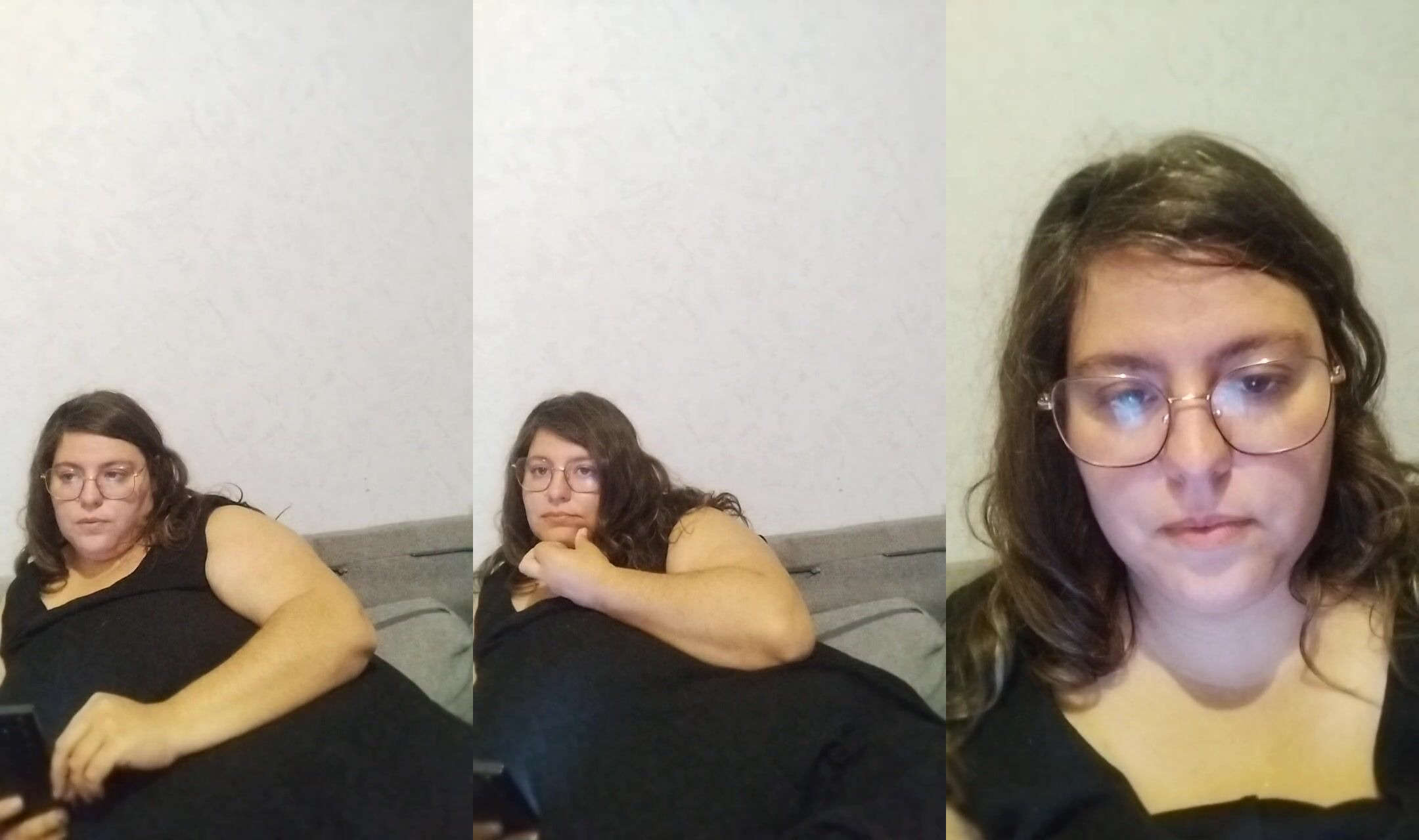a bespectacled bitch sits and talks but she doesn't want to show anything else